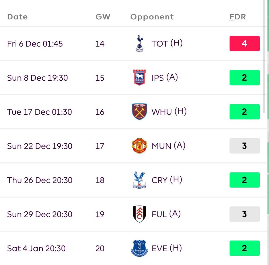 They now have absolutely amazing fixtures ahead, both for their attack and defense.