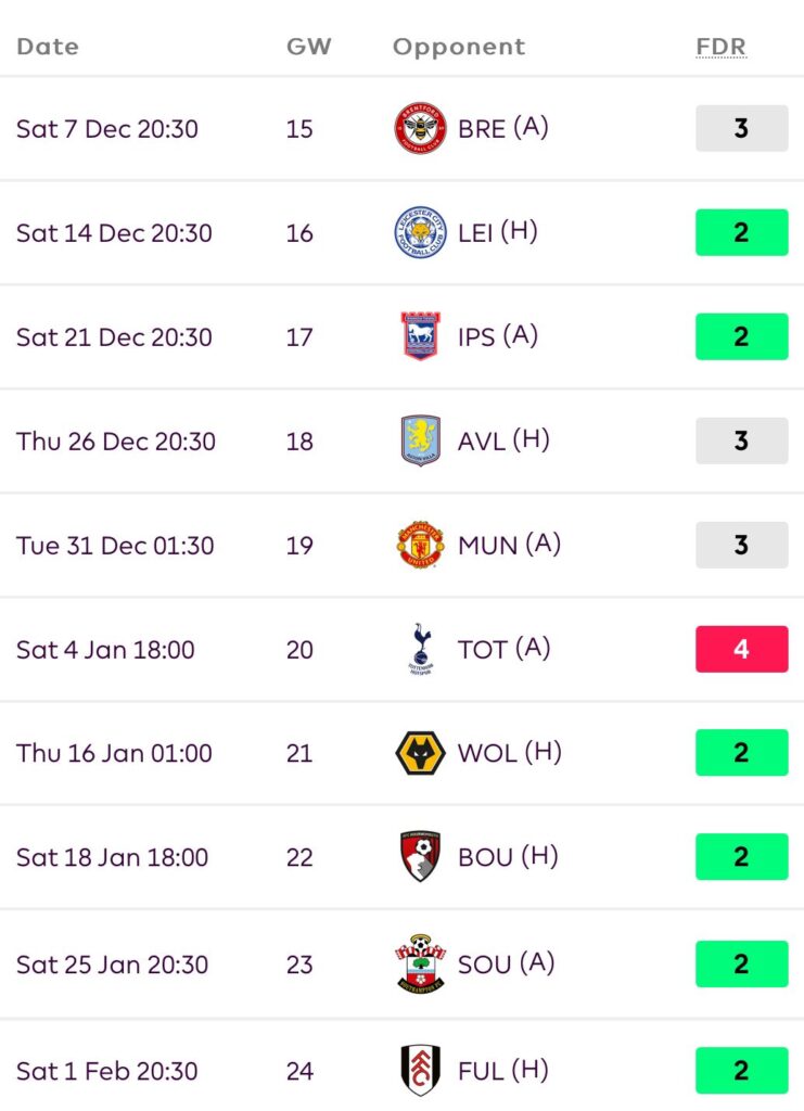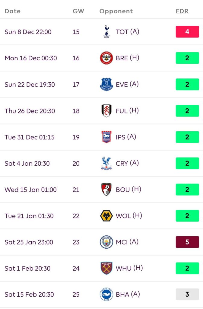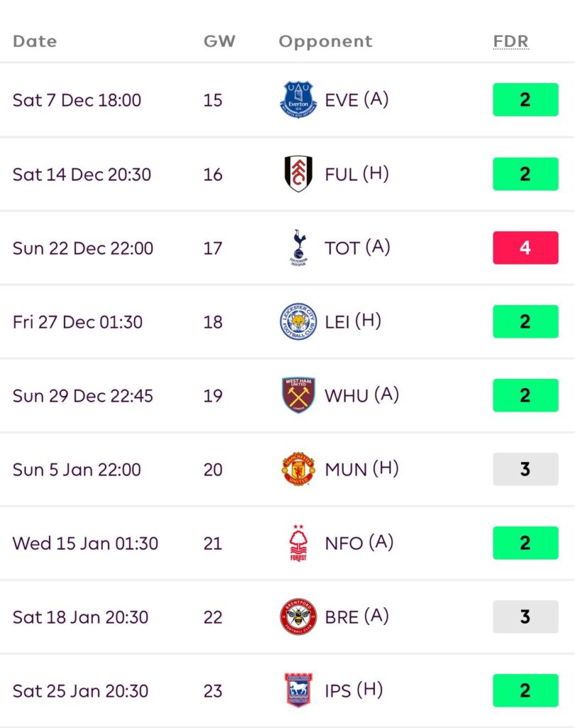 Now they have a decent run of fixtures, which lasts till GW24.