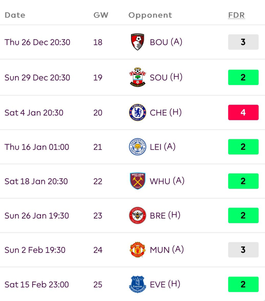 They now have absolutely amazing fixtures ahead, both for their attack and defence.